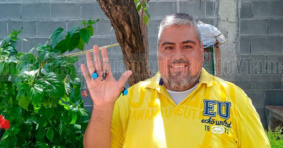 Nuevo Laredo, Tamaulipas. - El neolaredense José Antonio Campa, se volvió viral luego de que expusiera su trabajo en una página nacional de coleccionistas de Nintendo, al exhibir unos llaveros anti estrés que llamaron mucho la atención.