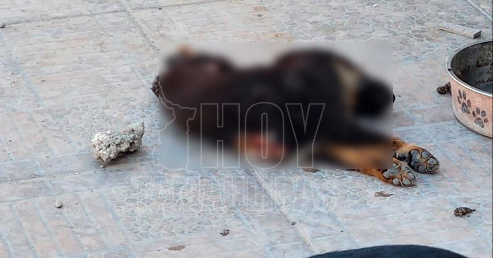 Matamoros, Tamaulipas. - Una terrible imagen se registra en una casa del Fraccionamiento Satélite, ya que un cachorro está siendo devorado por otros perros que permanecen encerrados en un patio, en condiciones poco adecuadas.