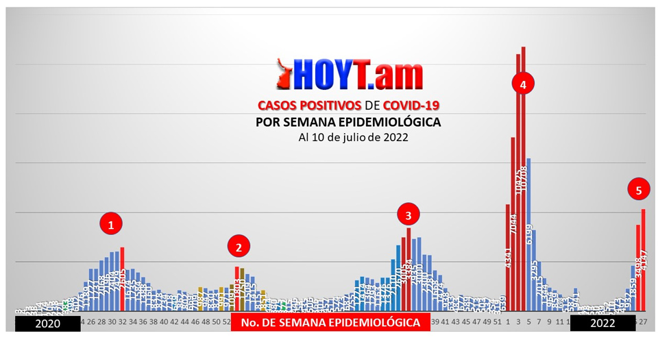Aunque el número de contagios ha estado por debajo de los registrados en la cuarta ola, se considera que esta se podría extender durante tres semanas más, siempre y cuando el pico más alto haya sido en la Semana Epidemiológica 27.