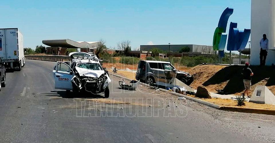Nuevo Laredo, Tamaulipas. - Una mujer provocó un aparatoso accidente sobre la Carretera Aeropuerto de Nuevo Laredo, en el que se reportaron miles de pesos en daños materiales.
