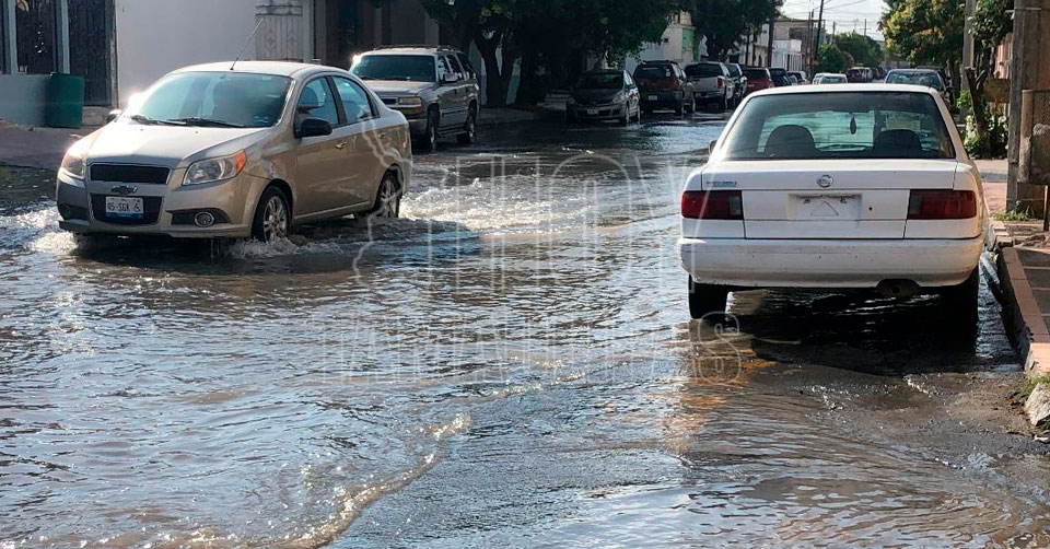 Desde las 8:00 de la mañana en la esquina de la calle Canales y Guillermo Domínguez empezó a salir gran cantidad de agua del suelo, originando que se inundaran las calles Guillermo Domínguez, la Ocampo y la Roberto F. García.