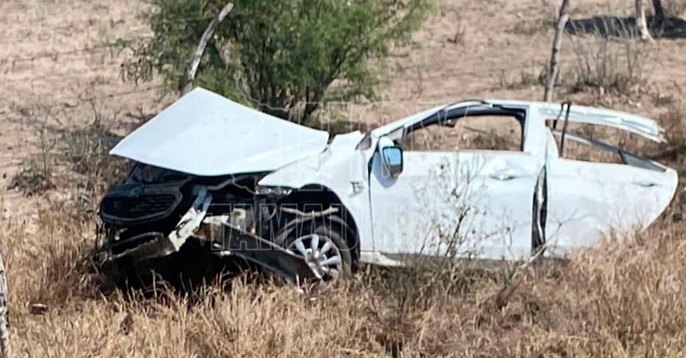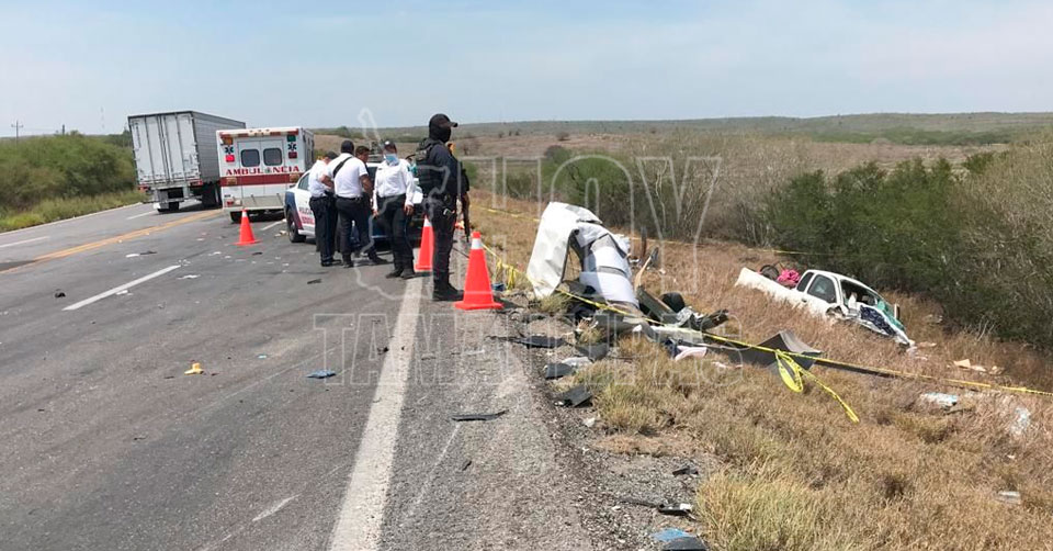 San Fernando, Tamaulipas. - Un fuerte carreterazo entre un vehículo y una camioneta en la Matamoros-Victoria, dejó como saldo dos personas sin vida y una mujer lesionada que de milagro sobrevivió al encontronazo.