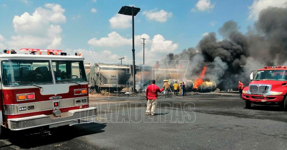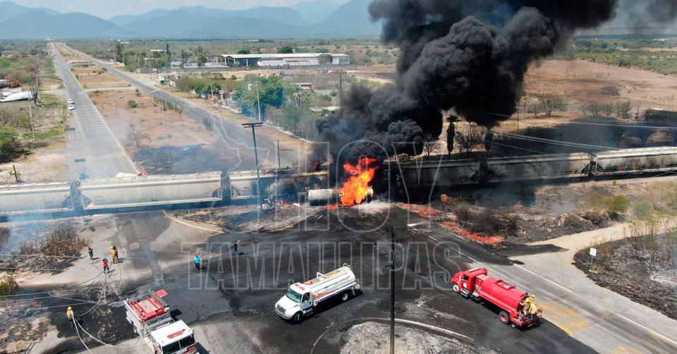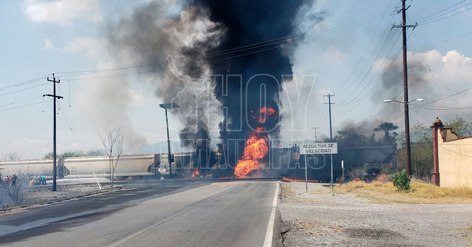 Explota pipa tras chocar con el tren en el ejido El Olmo