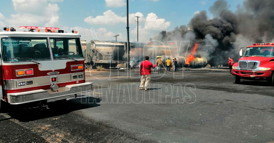 Un muerto y un herido, saldo de explosión de pipa al chocar con el tren en Ciudad Victoria