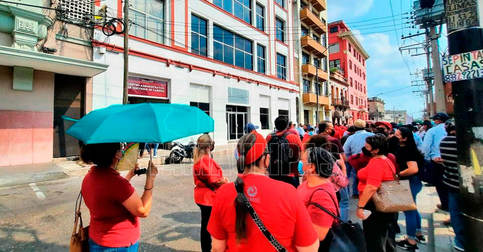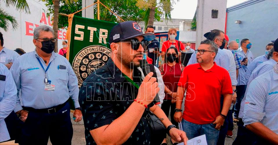 Cerca de 300 integrantes de la Sección 18 del Sindicato de Telefonistas de la República Mexicana (STRM) llegaron hasta la calle Isauro Alfaro Otero, entre las calles Emilio Carranza y Altamira, para plantarse frente al edificio federal, donde están las oficinas del organismo laboral.