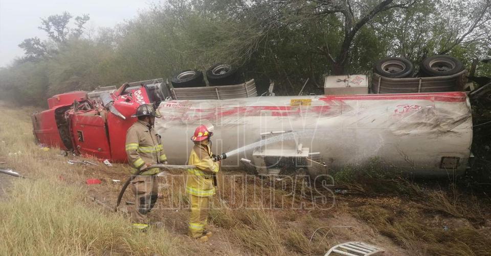 Abren la carretera Victoria-Monterrey tras volcadura de pipa cargada con gasolina