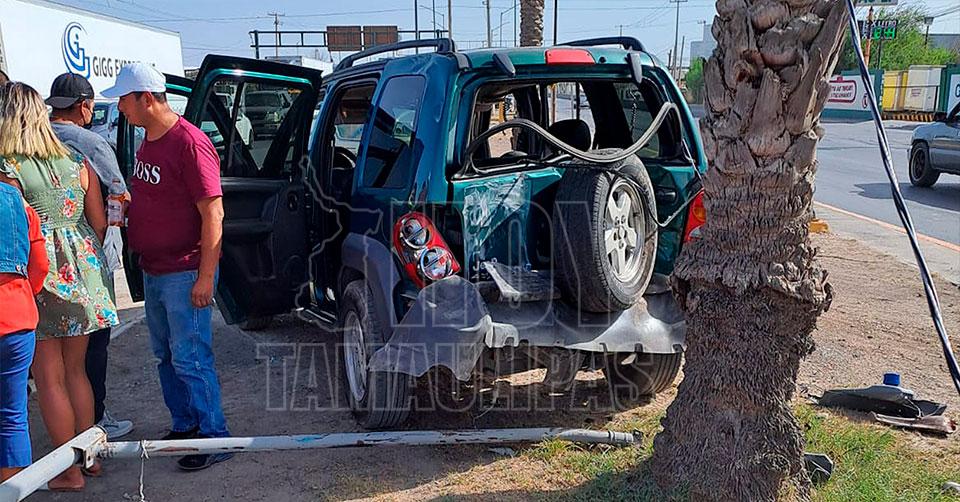 Tras el impacto, la unidad familiar se proyectó al camellón central y pegó contra un arbotante que derribó, llegando al lugar los paramédicos para auxiliar a los tripulantes del vehículo.
