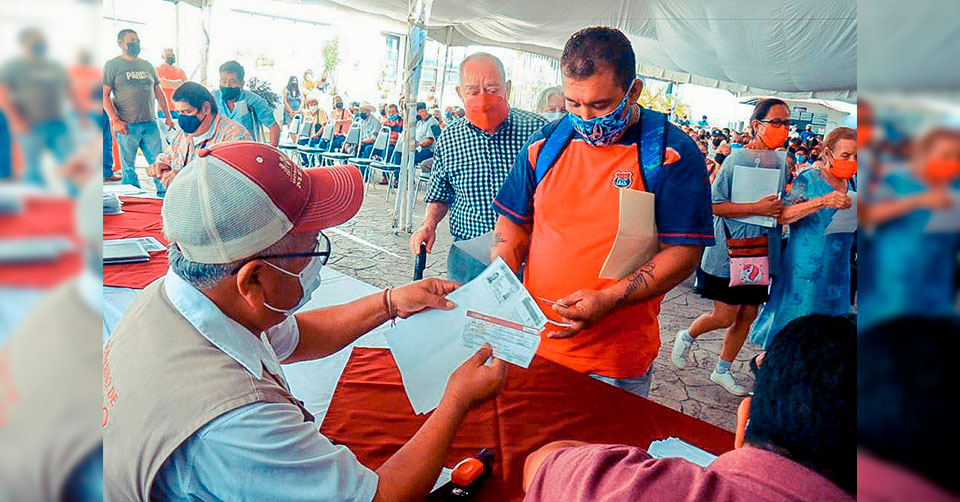 De manera personal, dio la bienvenida a los cientos de beneficiarios del programa federal que, a temprana hora de este lunes, se dieron cita en Palacio Municipal para recibir el apoyo económico por parte del personal de la SEBIEN.