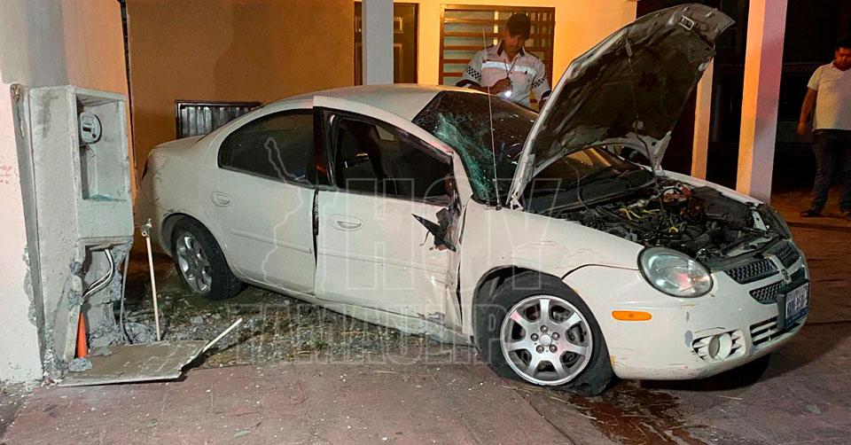 Ciudad Victoria, Tamaulipas. - Un conductor en estado de ebriedad resultó lesionado luego de perder el control de su vehículo debido al exceso de velocidad y terminar por "volar" varios metros, hasta impactarse contra la mufa y cochera de una vivienda en Victoria.