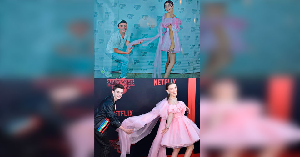 Fue en el 2019 cuando se presentó la tercera temporada de la serie de Netflix cuando los protagonistas Noah Schnapp y Millie Bobby Brown aparecieron en la alfombra roja. La actriz lució en ese entonces un hermoso vestido rosa.
