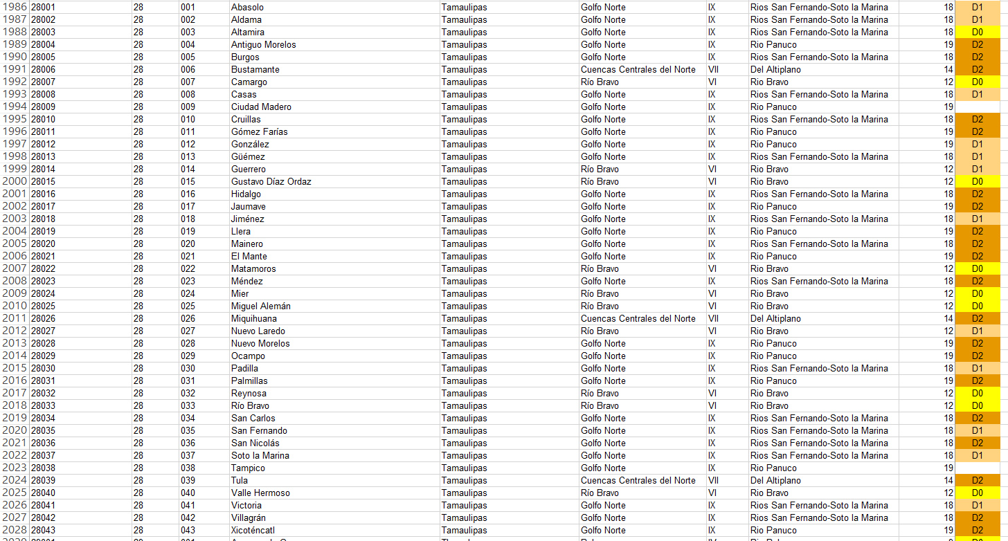 Además, otro estudio contiene los municipios afectados por alguna condición desde anormalmente mostró a los municipios de Burgos, Cruillas, Hidalgo, Mainero, San Carlos, San Nicolás y Villagrán, con un (D2) lo que quiere decir que presentan Sequía Severa.