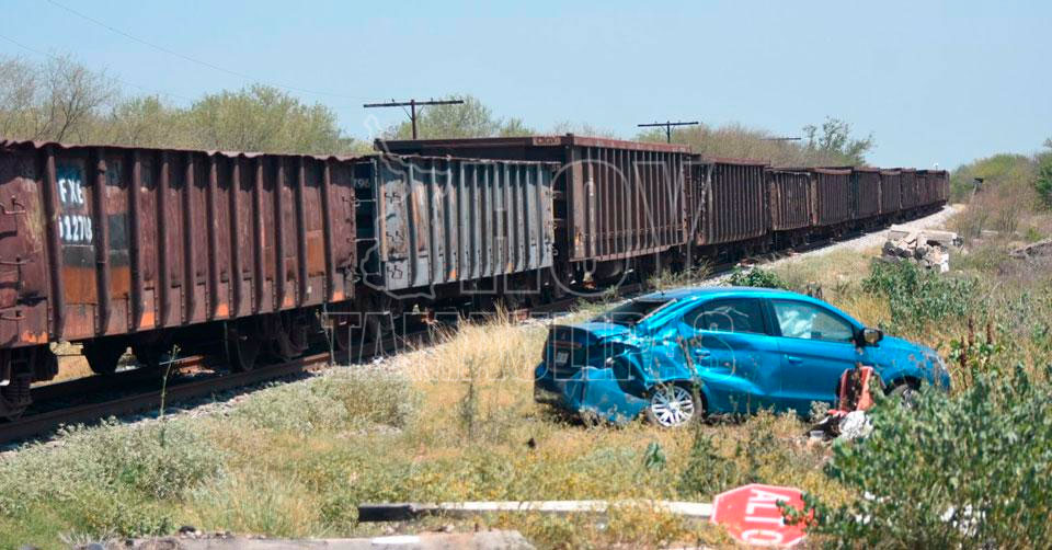 Hidalgo, Tamaulipas. – Dos adultos mayores de aproximadamente 70 años de edad resultaron lesionados esta mañana, luego de que el vehículo en el que viajaban fue embestido por el tren en una maniobra temeraria por el conductor al intentar ganarle el paso.