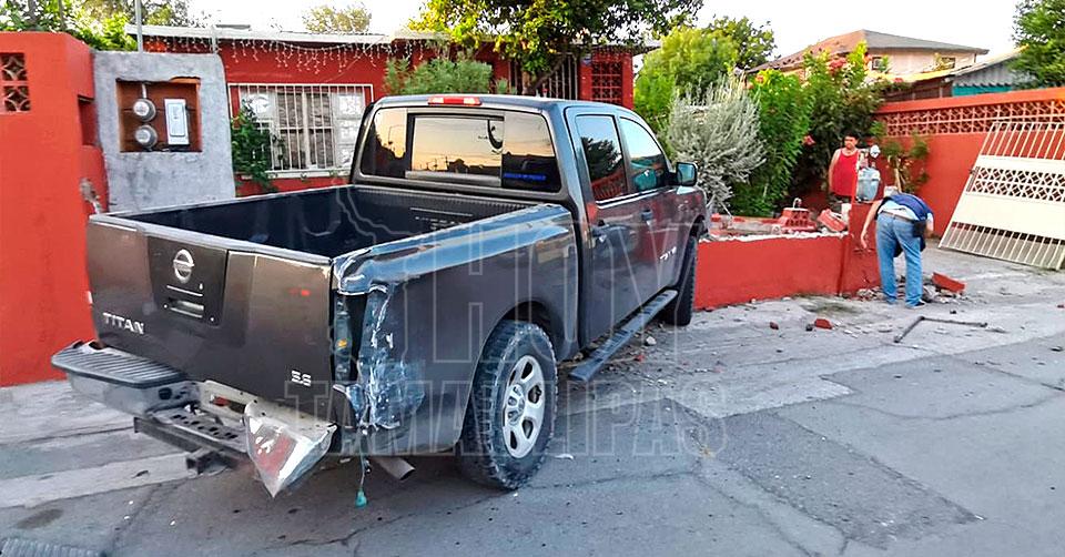 Tras el encontronazo, la Nissan Titan pegó contra una camioneta Chevrolet Panel modelo 2005 estacionada y posteriormente chocó contra la barda de una vivienda.
