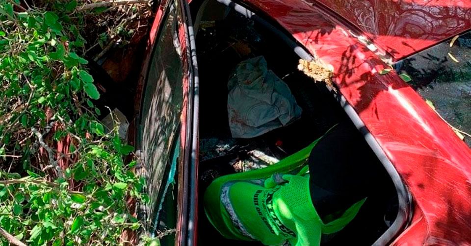 El altamirense viajaba a bordo de un auto Chevrolet Aveo guindo con placas de Tamaulipas, que acabó en posición normal afuera de la carretera entre los matorrales.