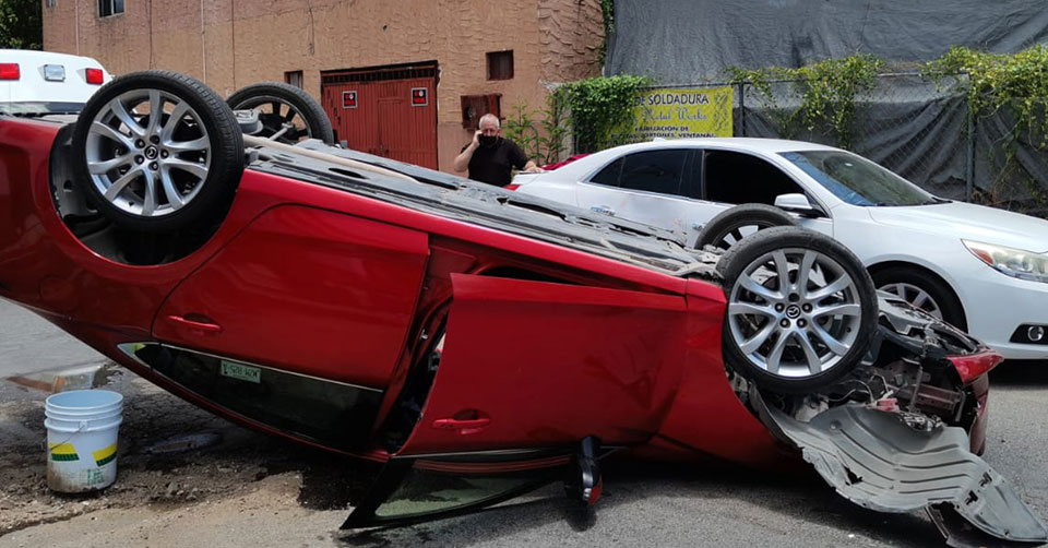Se distrae en el celular, choca y vuelca en Nuevo Laredo