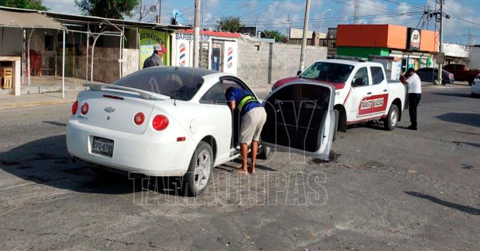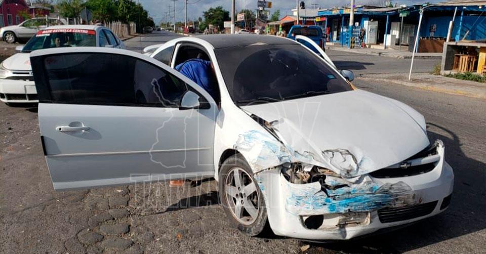 Matamoros, Tamaulipas.- Un fuerte choque vehicular ocurrió en la colonia Jesús Vega Sánchez, dejando a una persona herida y cuantiosos daños materiales.