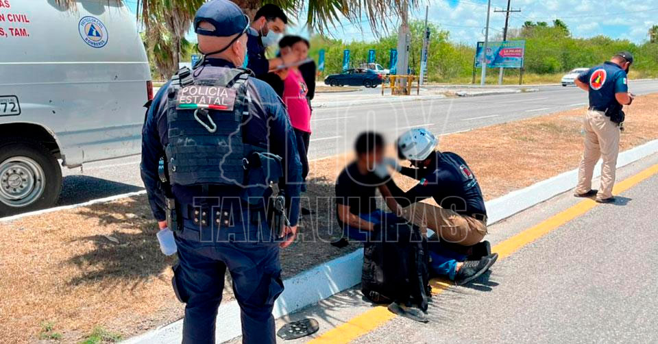 Matamoros, Tamaulipas. - Paramédicos de Protección Civil (PC) atendieron a un joven en Matamoros que resultó con lesiones, luego de que presuntamente se lanzó intencionalmente a una camioneta.