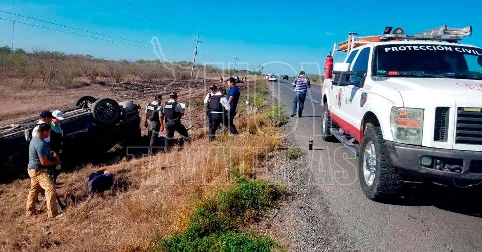 Jiménez, Tamaulipas. – Siete adultos y una menor con lesiones graves, dejó como saldo un fuerte choque y volcadura de dos vehículos esta mañana en la carretera Victoria-Matamoros, a la altura del Tinieblo.