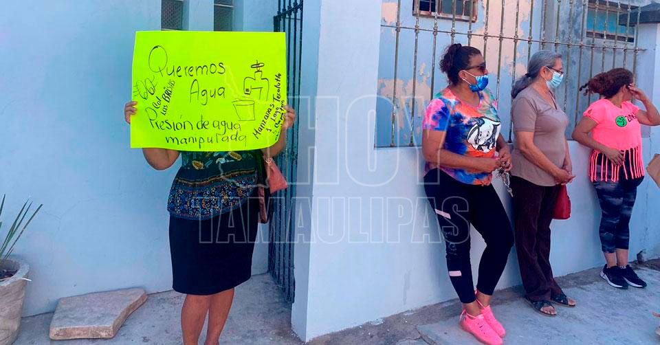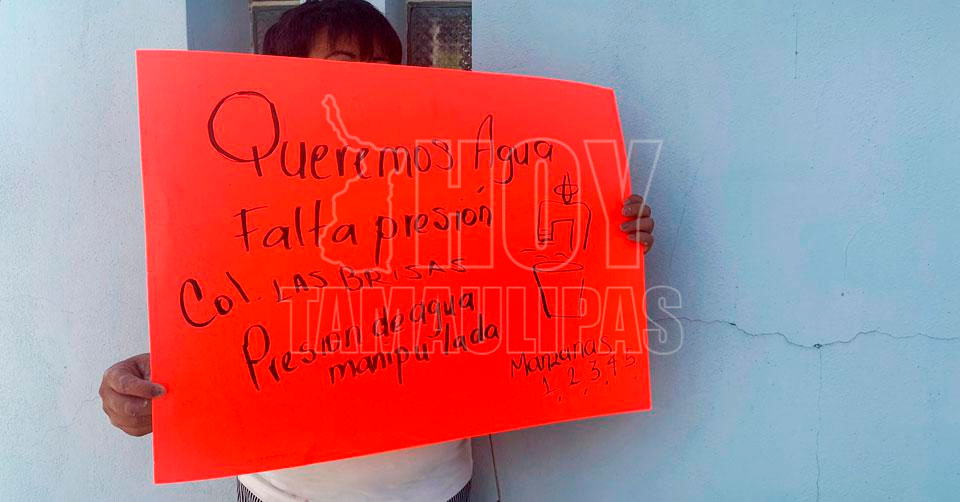 Ciudad Victoria, Tamaulipas. - Desesperados porque hace más de tres meses no tienen agua, habitantes de la colonia Las Brisas se manifestaron este día para exigir a la Comisión Municipal de Agua Potable y Alcantarillado (Comapa) de Victoria los doten del vital líquido.