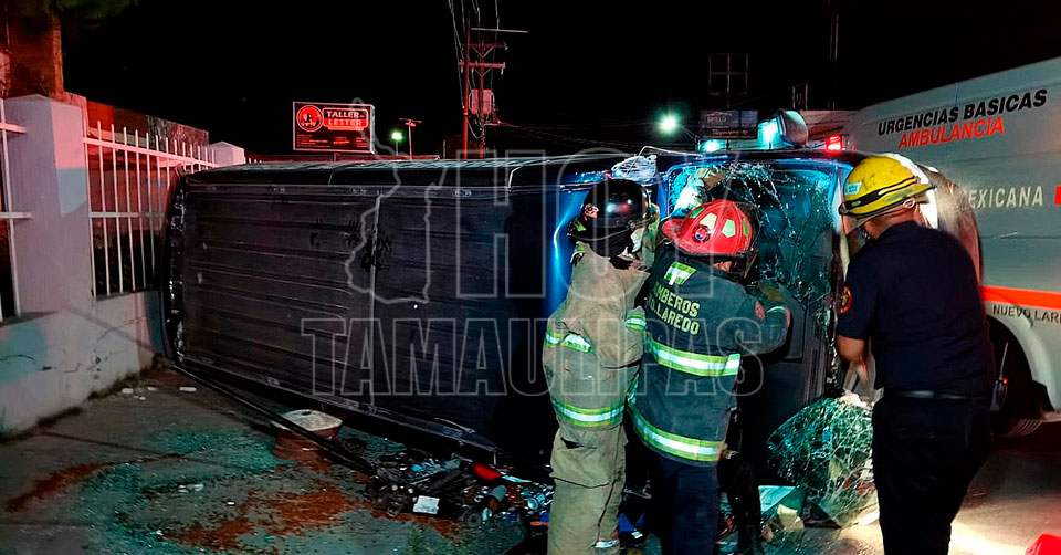 Choque con volcadura deja cinco heridos, uno grave en Nuevo Laredo