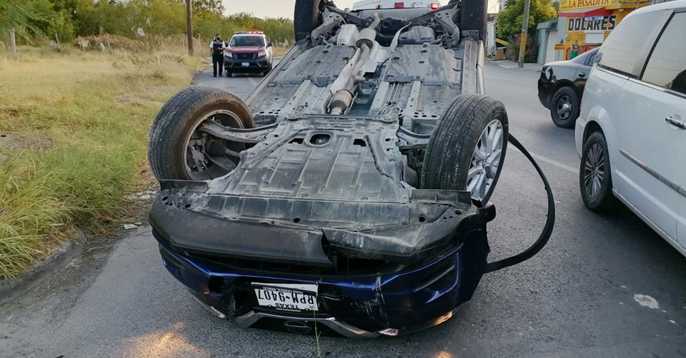 Según informes, la conductora que lleva por nombre María Silveira, manejaba a exceso de velocidad de norte a sur y en el referido punto se descontroló, se subió a la banqueta y pegó en unos tubos de contención, los cuales provocaron que volcara.