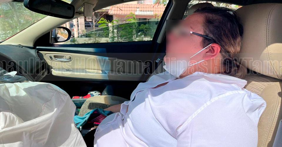 Mujer sale lesionada al causar carambola en Matamoros