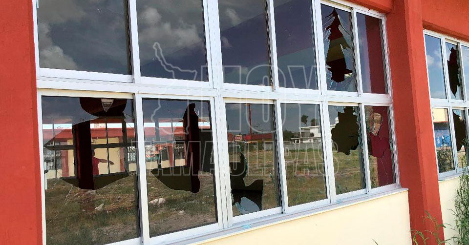Rompen vidrios de aulas en la Secundaría 9 en Matamoros