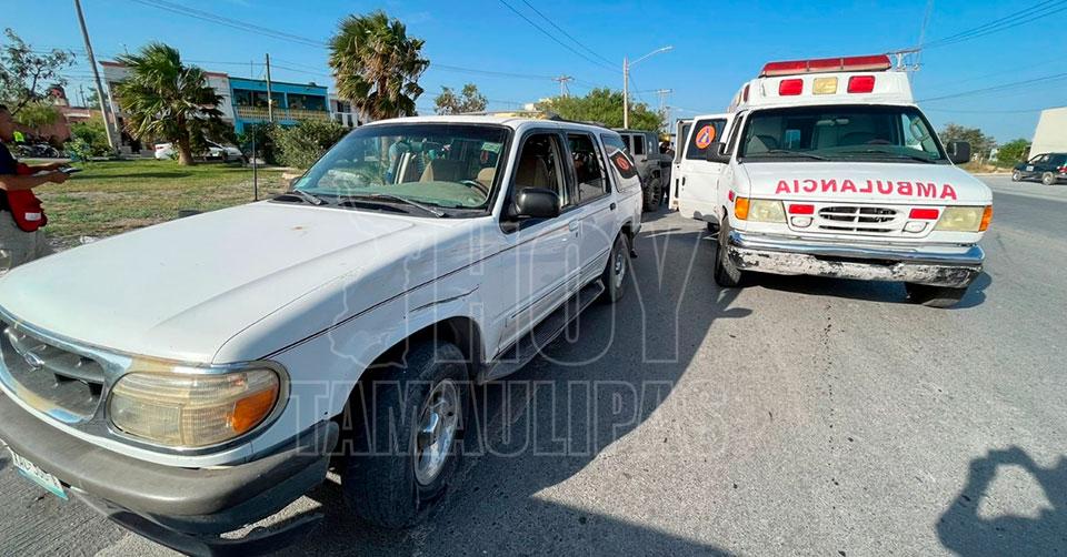 Matamoros, Tamaulipas.- Un accidente vial entre una motocicleta y una camioneta se registró esta tarde en Matamoros que dejó con lesiones al chofer de la moto.