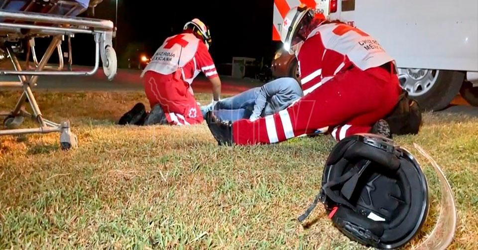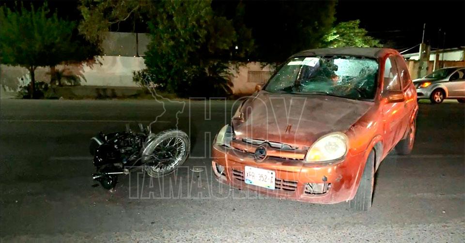 Ciudad Victoria, Tamaulipas.- Un motociclista resultó gravemente lesionado la noche de ayer jueves al ser atropellado por el conductor de un automóvil, quien en su intento de ingresar rápido a un motel en Ciudad Victoria terminó cerrándole el paso.