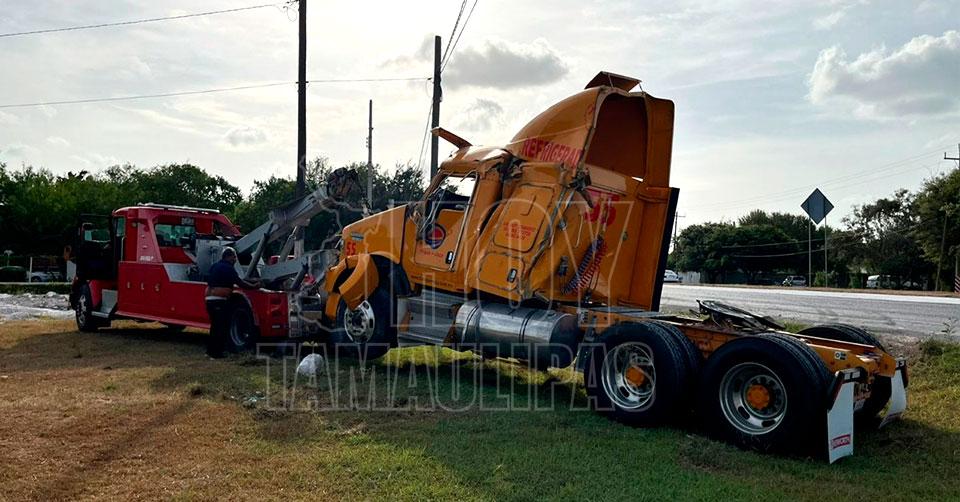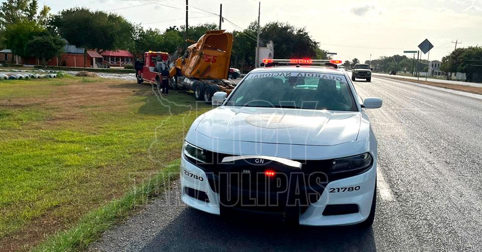 Vuelca tráiler en Matamoros, conductor sale ileso