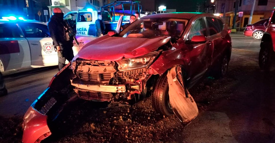 Matamoros, Tamaulipas. - Un fuerte percance vial se registró la madrugada de este sábado en el Boulevard Manuel Cavazos Lerma y cruce con Avenida Diagonal Cuauhtémoc en Matamoros, entre una camioneta Honda y un automóvil Chrysler.