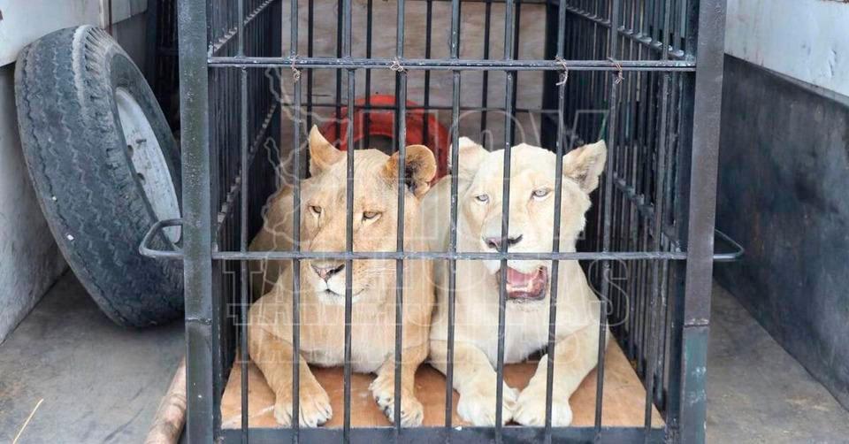 Los ejemplares no estarán por ahora en exhibición al público; llegaron directamente al área de cuarentena en donde serán observados por médicos veterinarios y después serían trasladados al recinto de leones en el zoológico.