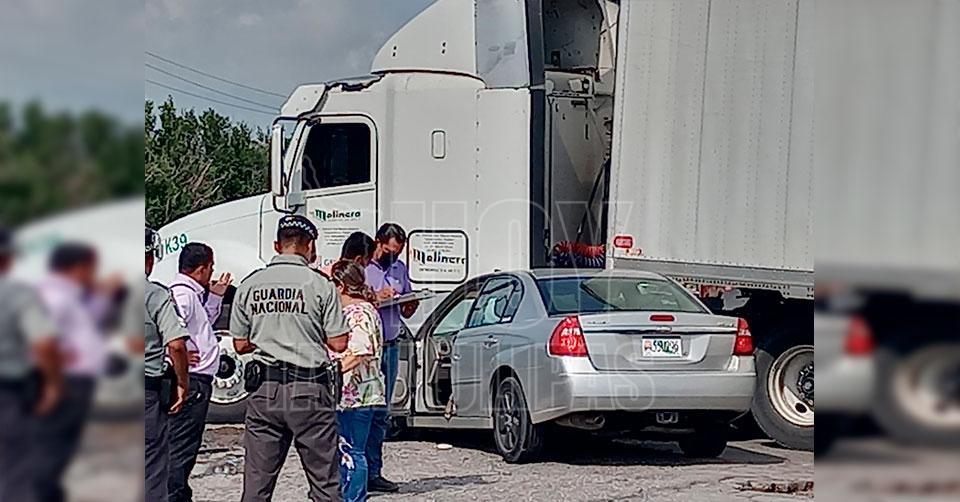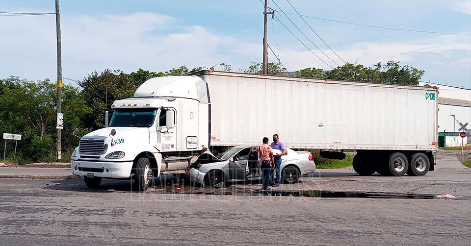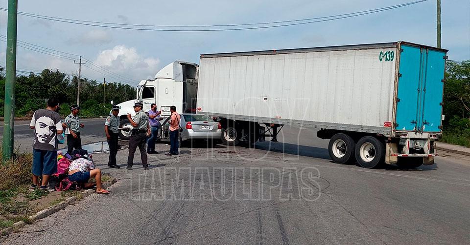 Tampico, Tamaulipas. - Integrantes de una familia que aparentemente venían de paseo, resultaron lesionados al estrellarse el automóvil en el que viajaban contra un tráiler que se les atravesó de manera repentina.