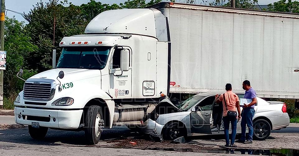 La unidad se impactó en el costado izquierdo de un tráiler Kenworth color blanco, cuyo operador hizo maniobra para cambiar de dirección, invadiendo por completo el espacio del carro.