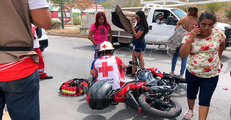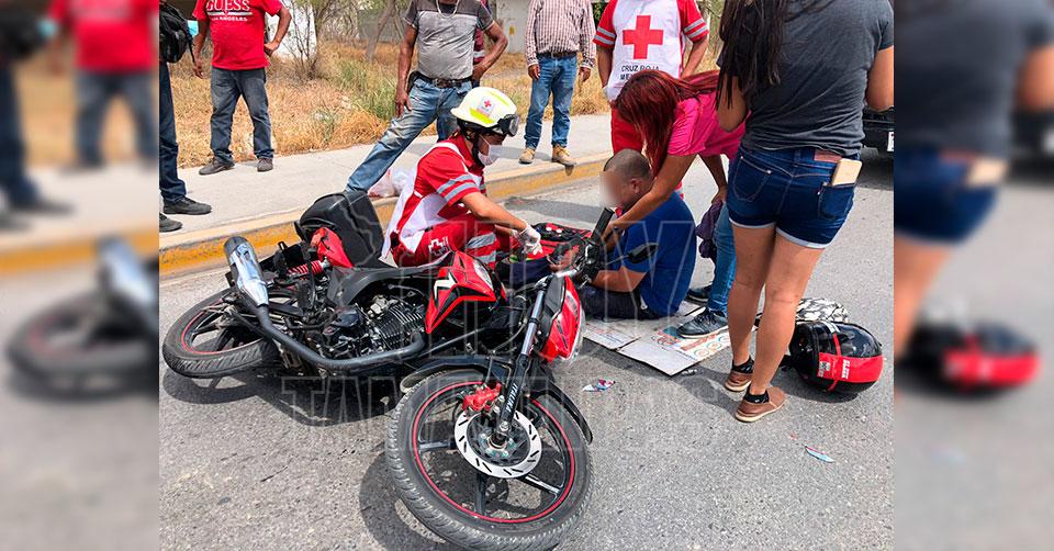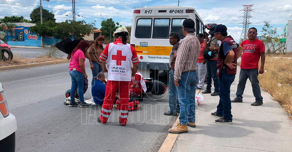 Ciudad Victoria, Tamaulipas. - Un motociclista terminó desorientado luego de estrellarse en la parte trasera de un microbús de la ruta 17 esta tarde, en el kilómetro 2 de la carretera Interejidal, frente al Complejo Estatal de Seguridad Publica.