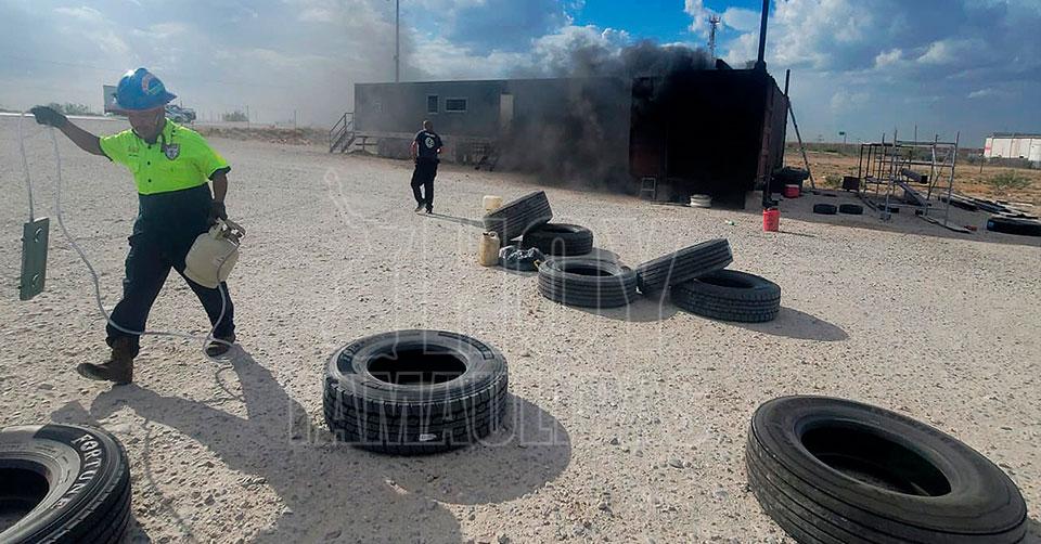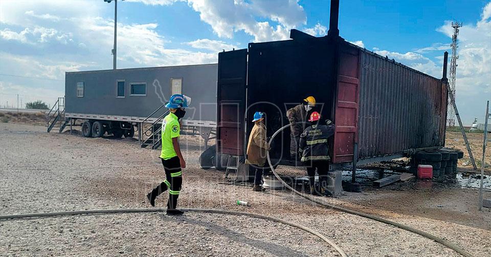 Nuevo Laredo, Tamaulipas. — Una caja de tráiler habilitada como almacén de plástico y neumáticos se incendió dentro de una línea de transportes, luego de que chispas de soldadura cayeron en el material, cuando personal realizaba trabajos en una oficina móvil contigua al lugar.