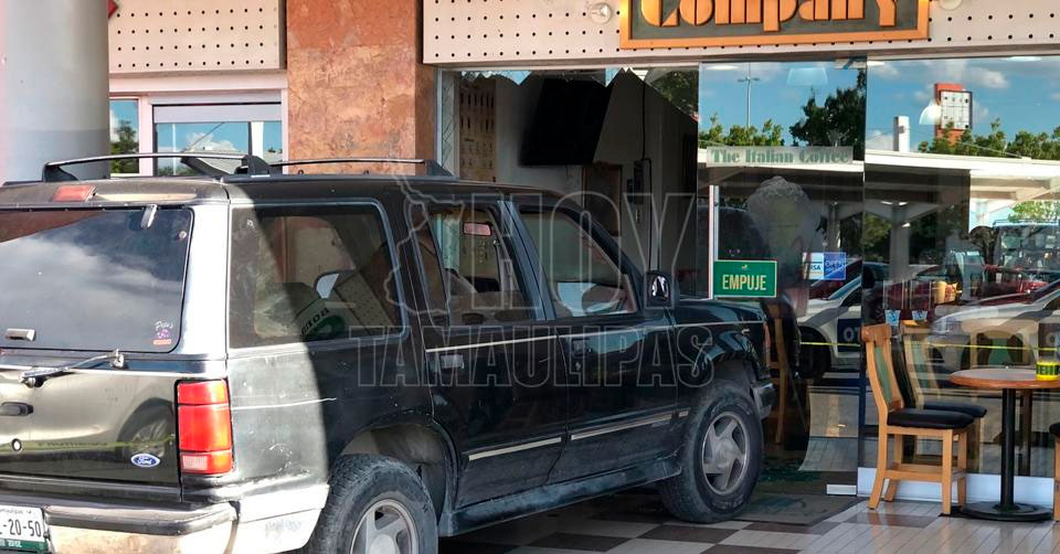 Ciudad Victoria, Tamaulipas. - Cuantiosos daños materiales a una cafetería dejó el conductor de una camioneta luego de confundir el pedal del freno con el acelerador, en Plaza Palmas.