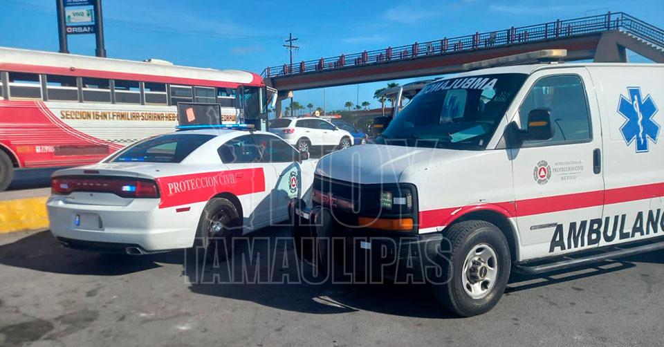 Mujer cae en microbús y resultó con herida de cráneo en Matamoros