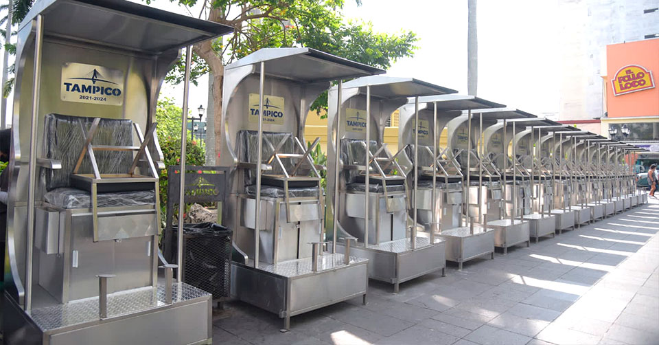 Chucho Nader detalló que los 37 módulos para el aseo de calzado serán ubicados en las plazas de Armas, Libertad e Hijas de Tampico y ofrecerán una identidad homologada al gremio de los boleros.