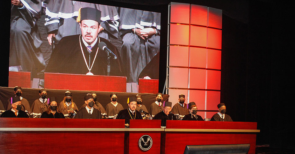 Subrayó que la Universidad reconoce en los catedráticos y sus enseñanzas el impulso que ha permitido avanzar institucionalmente, y que, por ello, por primera vez se entregan los reconocimientos y estímulos docentes teniendo como marco una asamblea solemne.