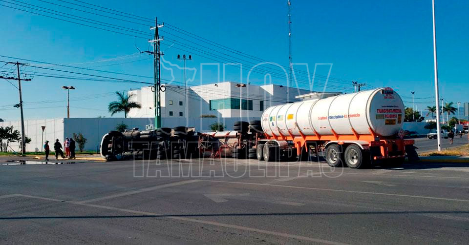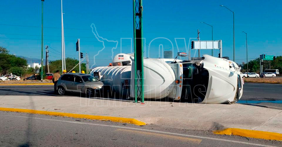 Ciudad Victoria, Tamaulipas. – Dos personas resultaron lesionadas esta mañana al registrarse la volcadura de una pipa cargada con un autotanque que transportaba 31 mil litros de diésel en Ciudad Victoria; circulación estará cerrada por varias horas.