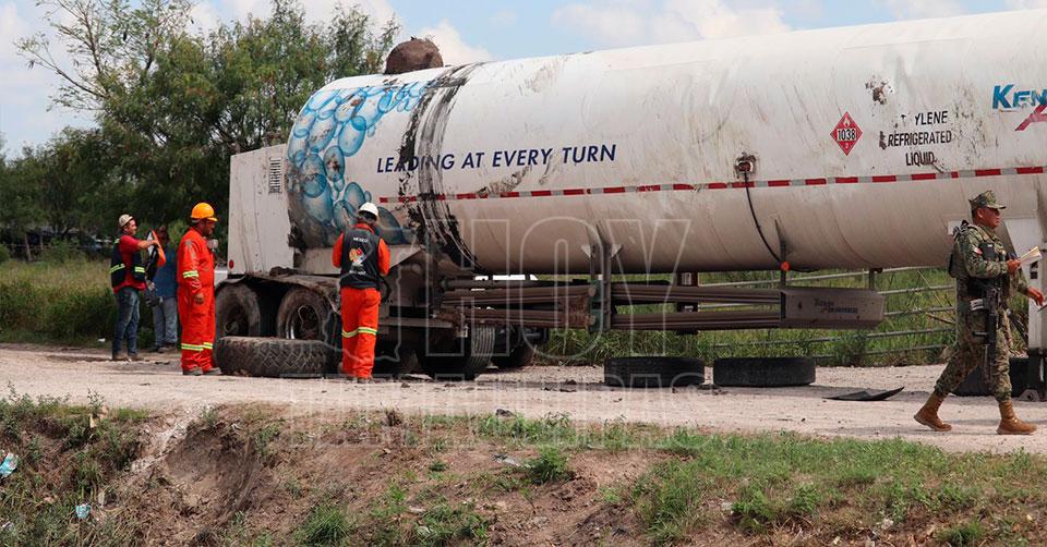 Pasa el peligro: retiran pipa volcada con etileno en Matamoros