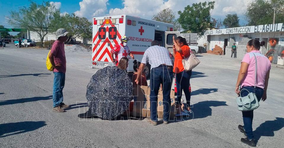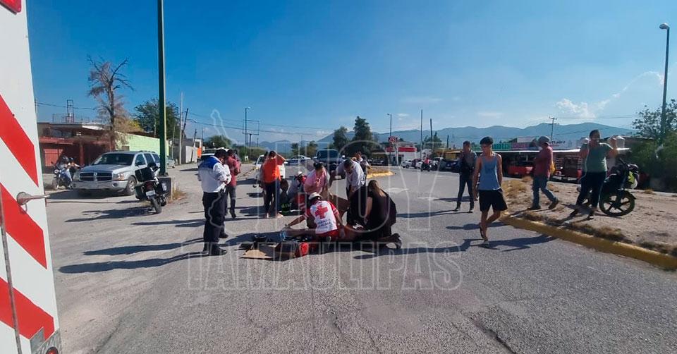 Ciudad Victoria, Tamaulipas. - Un motociclista resultó con fractura en su brazo izquierdo y la mujer que lo acompañaba con fractura en su pierna derecha, además de golpes en el cuerpo, cuando al ir en una motocicleta se impactaron contra una camioneta cuyo conductor intentó incorporarse a los carriles de circulación sin las debidas precauciones.