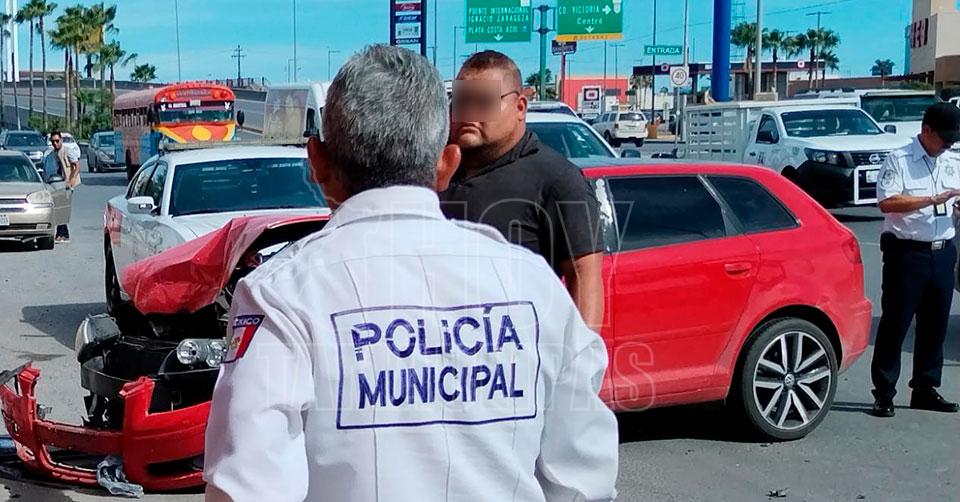 Matamoros, Tamaulipas. - Un carro de la marca Audi, quedó con el frente destrozado al chocar por alcance a una camioneta Chevrolet, Cheyenne, la cual no sufrió gran daño, en hechos que ocurrieron en el Bulevar Manuel Cavazos Lerma, a la altura de la calle Ricardo Salazar Ceballos.
