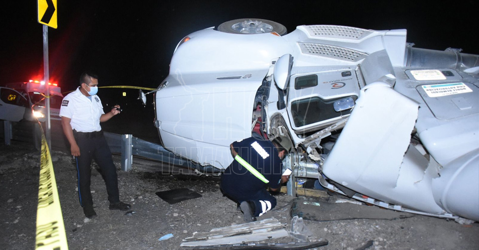 Ciudad Victoria, Tamaulipas. - Un joven trailero de aproximadamente 24 años de edad y originario de Cadereyta, Nuevo León perdió la vida al volcar la pesada unidad que conducía sobre la carretera Zaragoza-Victoria, en el entronque con la carretera a Soto La Marina.