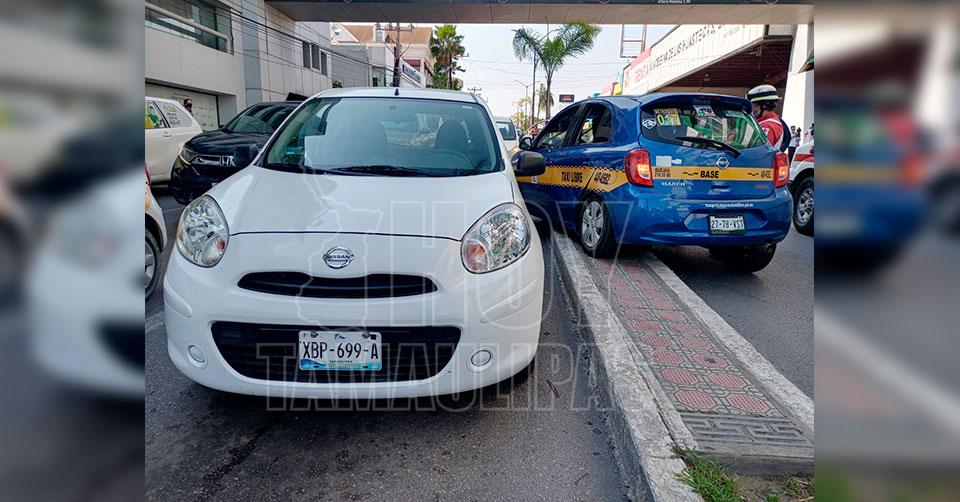 La unidad involucrada en este percance es un automóvil Nissan March color azul con franja amarilla habilitado como taxi, pero que en ese instante prestaba servicio dentro de la ruta Azteca-Tampico, mismo que circulaba en dirección de sur a norte.