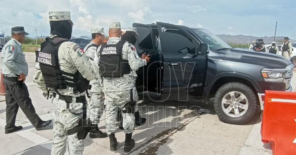 Al realizar labores de vialidad por las afectaciones de las pasadas lluvias en el kilómetro 138 de la carretera federal Hermosillo-Guaymas, guardias nacionales detectaron a dos tripulantes de una camioneta negra con vidrios polarizados y sin placa de circulación frontal, por lo que procedieron a marcar el alto y realizar una revisión de rutina.