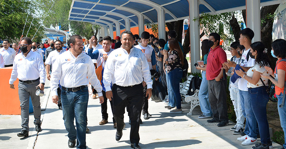 La visita del Rector se enmarca en la gira ADN UAT que realizó en esta facultad fronteriza, donde encabezó un evento de bienvenida a la comunidad estudiantil de nuevo ingreso.
