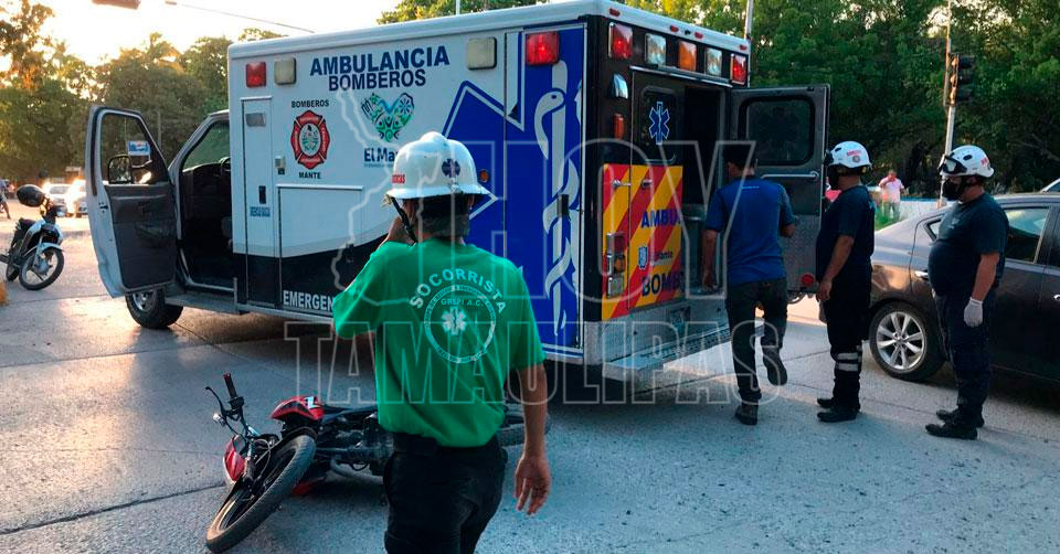 El Mante, Tamaulipas. – Una joven pareja resultó con escoriaciones en varias partes del cuerpo tras estrellarse contra un autobús de la línea Transpaís en Bulevar Manuel Cavazos Lerma en El Mante.