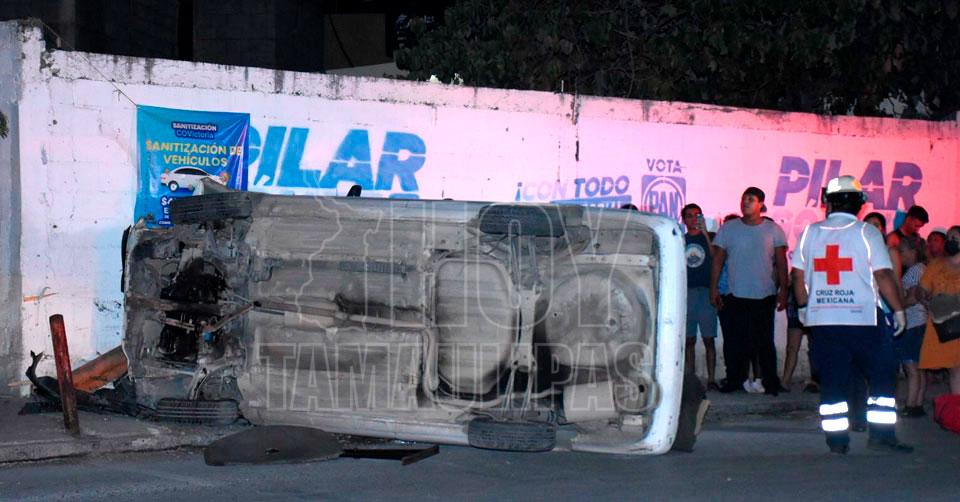 Ciudad Victoria, Tamaulipas. - Un conductor resultó lesionado luego de estrellar y volcar su unidad contra la barda de un domicilio en la Avenida Las Américas y calle Zeferino Fajardo en Victoria.